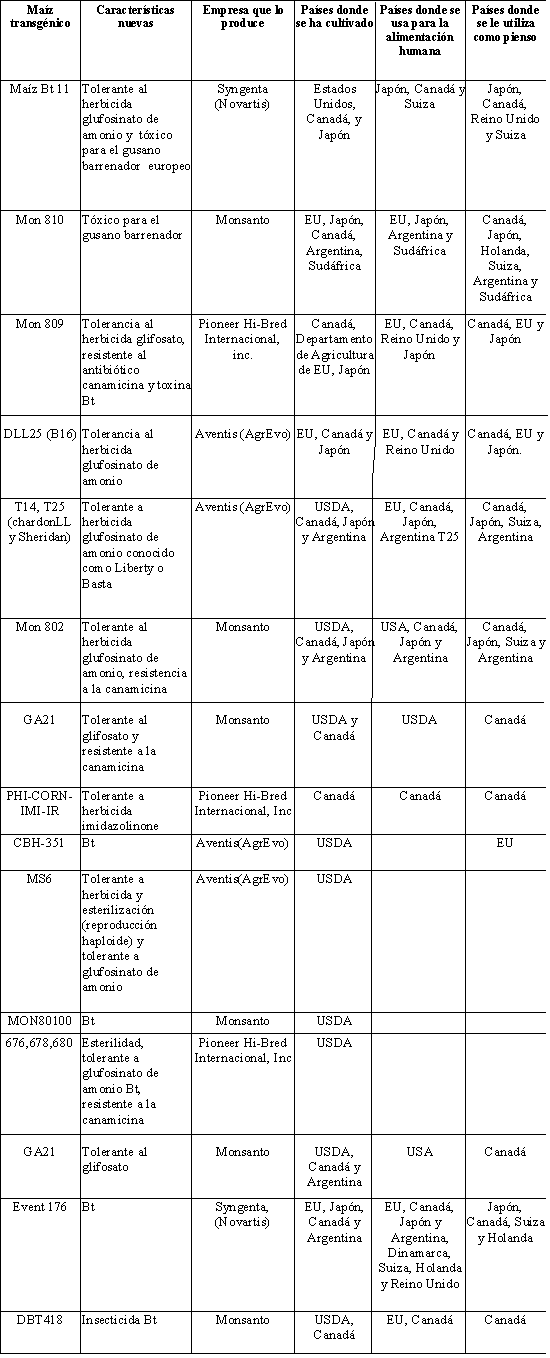 La producción de organismos genéticamente modificados en su mayor parte son creaciones de empresas transnacionales a las cuales lo que les interesa es la generación de ganancias extraordinarias, con la menor cantidad posible de costos. Por ello, las nuevas variedades de maíz se diseñaron para resistir el consumo indiscriminado de herbicidas que la mismas empresas transnacionales producen (Monsanto, Novartis, Du Pont, etcétera). La resistencia a los herbicidas hace posible que la planta sea roseada con grandes cantidades sin que muera o bien le brinda a la planta la capacidad de resistir insecticidas más tóxicos que los usuales.